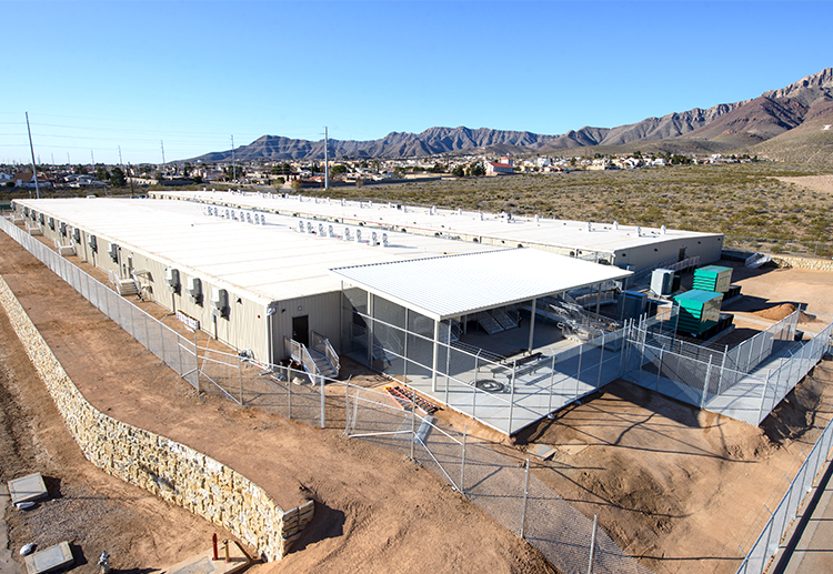 Turnkey modular facilities to process 800 persons at one site with supporting mechanical, electrical, plumbing, sewer, water, foundation, and other infrastructure.